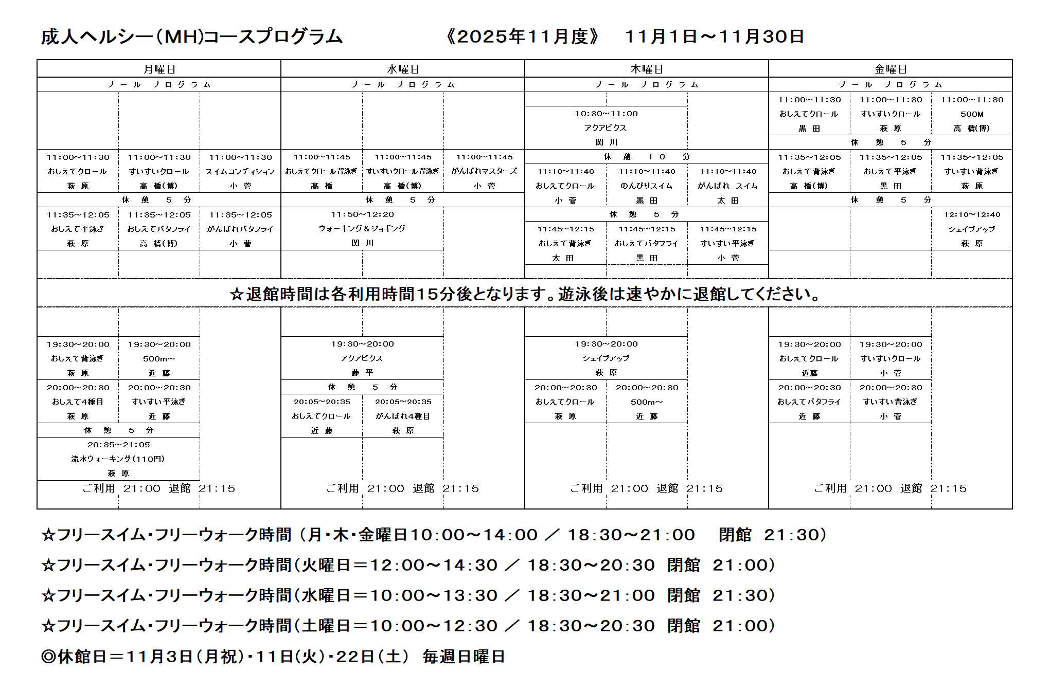 2025年11月度の成人ヘルシー(MH)コースプログラムがご確認いただけます。 11月度のダウンロードはコチラから出来ます。